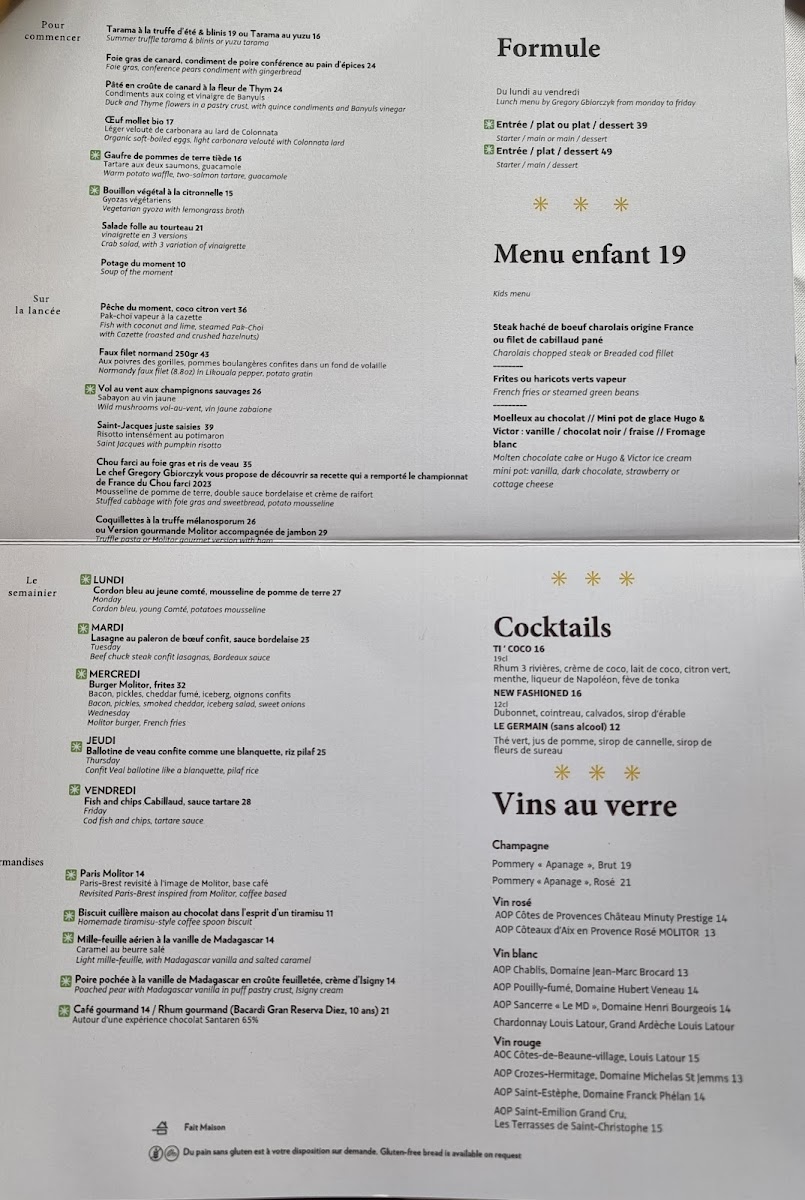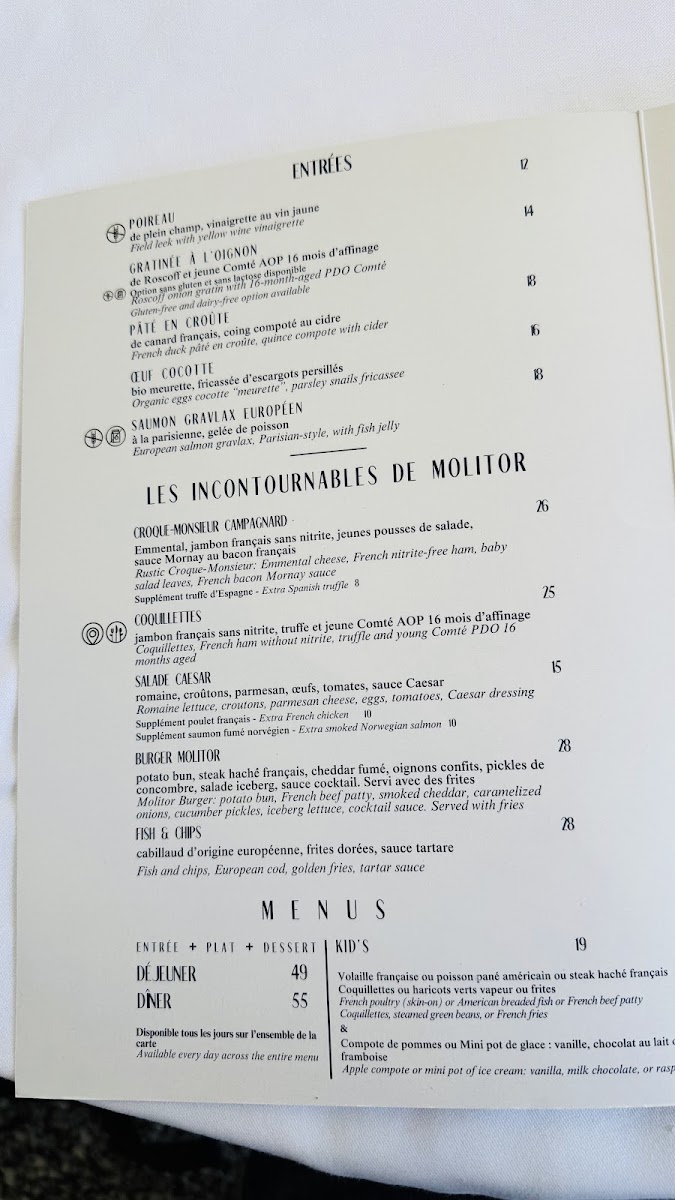 Welcome to BRASSERIE MOLITOR, a chic culinary gem nestled in the heart of Paris. Here, traditional brasserie fare is given a modern twist, delivering an unforgettable dining experience. Start your journey with the exquisite œuf de poule mollet, paired beautifully with duck liver and a delightful pumpkin purée infused with tonka bean, all for €16.00. Don’t miss the signature coquillettes à la truffe, a luxurious pasta dish crafted with aged Comté and savory ham, or the remarkable M. Croque that takes a delectable truffle-infused approach to this classic. For those seeking plant-based options, the flame-cooked broccoli served with tahina sauce is a standout. Customers rave about the warm service, stylish decor, and the innovative cuisine that reflects Chef Simolka's creativity. At BRASSERIE MOLITOR, every plate tells a story of comfort, elegance, and gourmet flair, making it a must-visit for food enthusiasts.